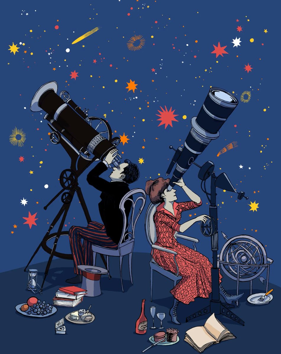 "Stargazers," by Stephanie Von Reiswitz 🌟🌟👀 Stephanie is represented by @debutart. Explore her portfolio: buff.ly/32OyvhB #stargazers #stargazing #nightsky #astronomy #planets #science #illustrationart #digitalillustration #penandink #linewithcolor #illustrator