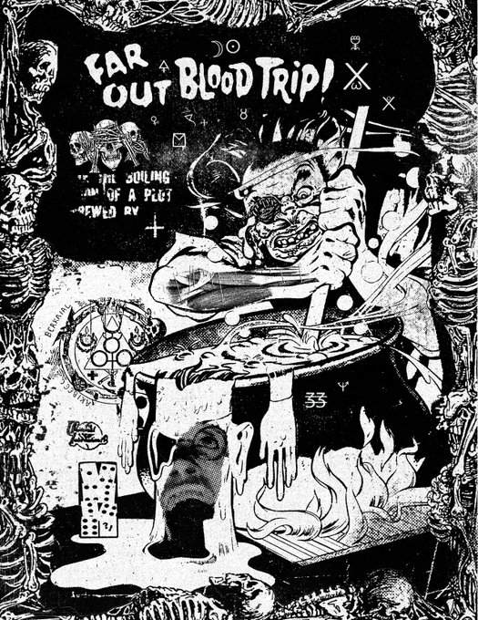 Far Out Blood Trip! Prompt 3: Witchcraft. This one got a bit too cluttery! #inktober2022 #drawoween #xeroxart #plasticman #raidersofthelostark #witchcraft