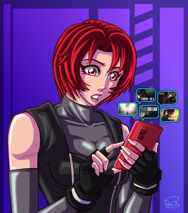 Rabiscando! Nesse último desenho do ano, Regina vendo que muitos remakes foram anunciados recentemente, mas nada de Dino Crisis... :( #dinocrisis #felizanonovo #art #capcom #remake #PlayStation #regina #イラスト