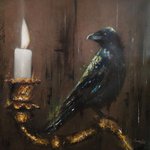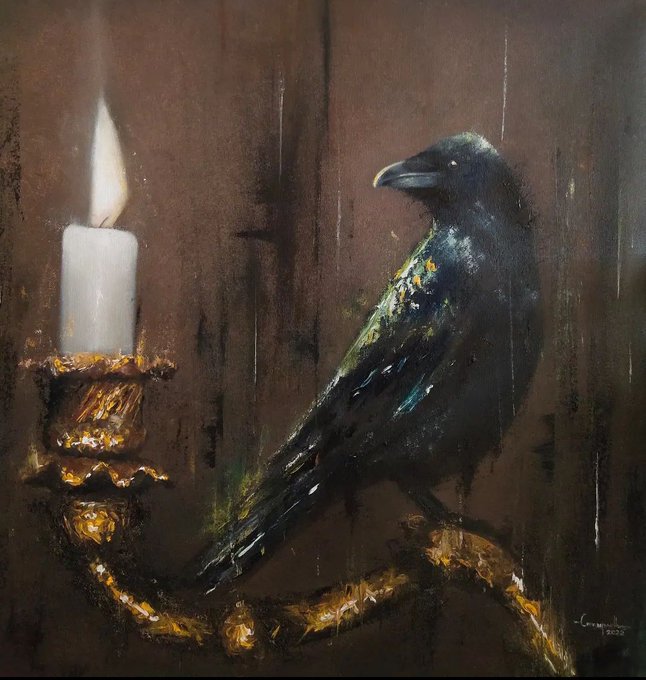 'The candle and the raven' Size: 60cm height 60cm width Medium: Oil on canvas Price: 1225$ Free shipping. DM to place order #PleaseRT #BuyArtNotCandy #artistsontwitter #forsale #art #oilpainting #original #Raven #wallart #ravenpainting