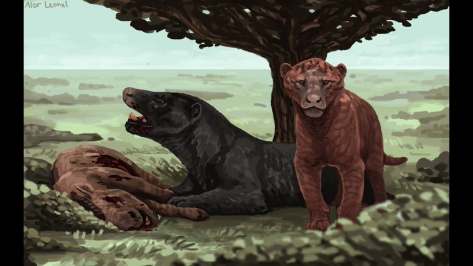 Simbakubwa kutokaafrika couple with a Hipparion kill. Commission for @CrkyItsChrstian #bear #Pleistocene #Paleoart #Sciart #conceptart #illustration #digitalpainting