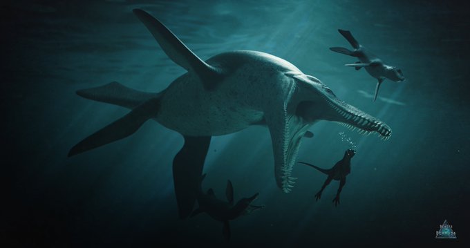 A mother kronosaurus and her babies, for beasts of bermuda. #paleoart #prehistoric #pliosaur #reptile #kronosaurus