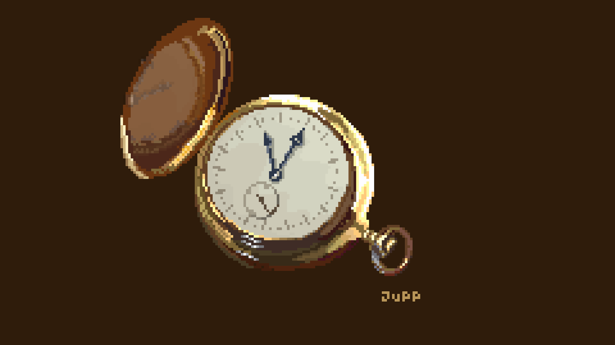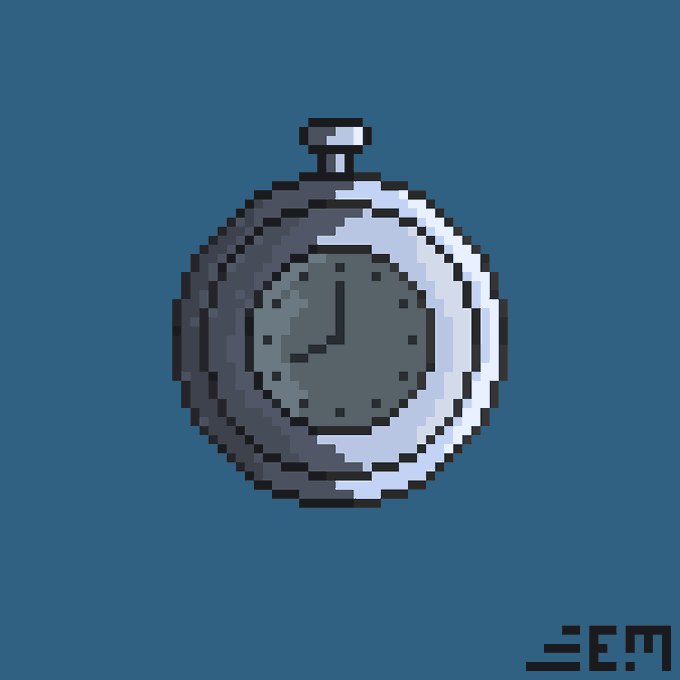 The first time I went to small anime convention I bought this #PocketWatch It actually has a lot of little engravings I'd love to add, but I'm always leaving @Pixel_Dailies to the last minute and its 2am, again. (Zughy-32) #pixelart #aseprite #pixel_dailies #ドット絵