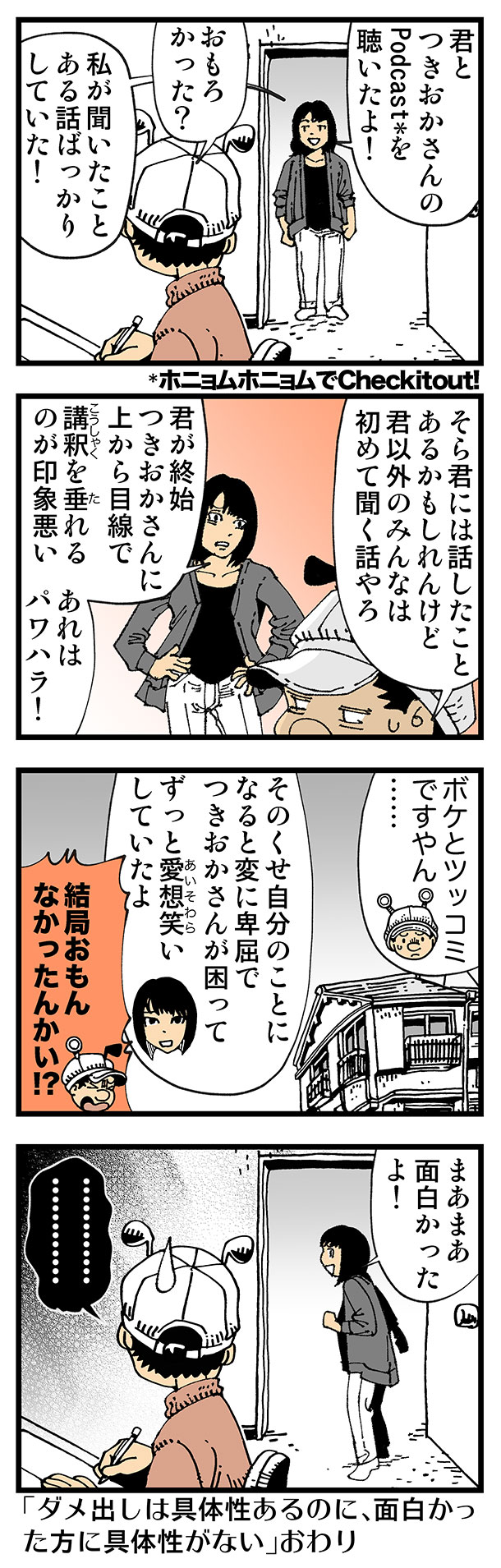 #何もないようなことが幸せだったと思う普通の出来事 【普通】ダメ出しの嵐 人間って本当に言いたいことは具体的なことやねんな…ともあれ #Podcast 番組@honyomuhonyomu 聴いて!→podcasts.apple.com/jp/podcast/id1… nozonder.com/?cat=16 #4コマ漫画 #コミックエッセイ #漫画が読めるハッシュタグ
