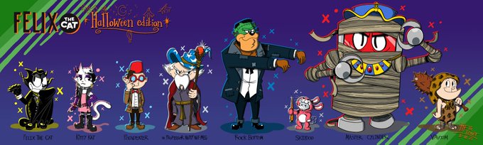 [NEW] Meet the "Classic Crew" of possible/rumor Felix The Cat series, in Halloween themed edition. And it's the last one that I completed them. #FelixTheCat #KittyKat #Poindexter #TheProfessor #RockBottom #Skiddoo #MasterCylinder #Vavoom #FanArt #ConceptArt #CharacterDesign