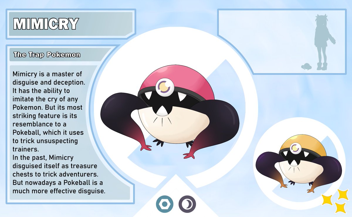 Sempre adorei a mecânica de Pokémon disfarçados no cenário, então resolvi fazer um Mimic que se disfarça de Pokeball!! Eu amei como o Mimicry ficou, e adoro que ele me passa muito uma vibe de "goblin mode" hehe 😈💕 #Pokemon #fakemon #pokemonart #pokemonfanart #mimic #pokeball