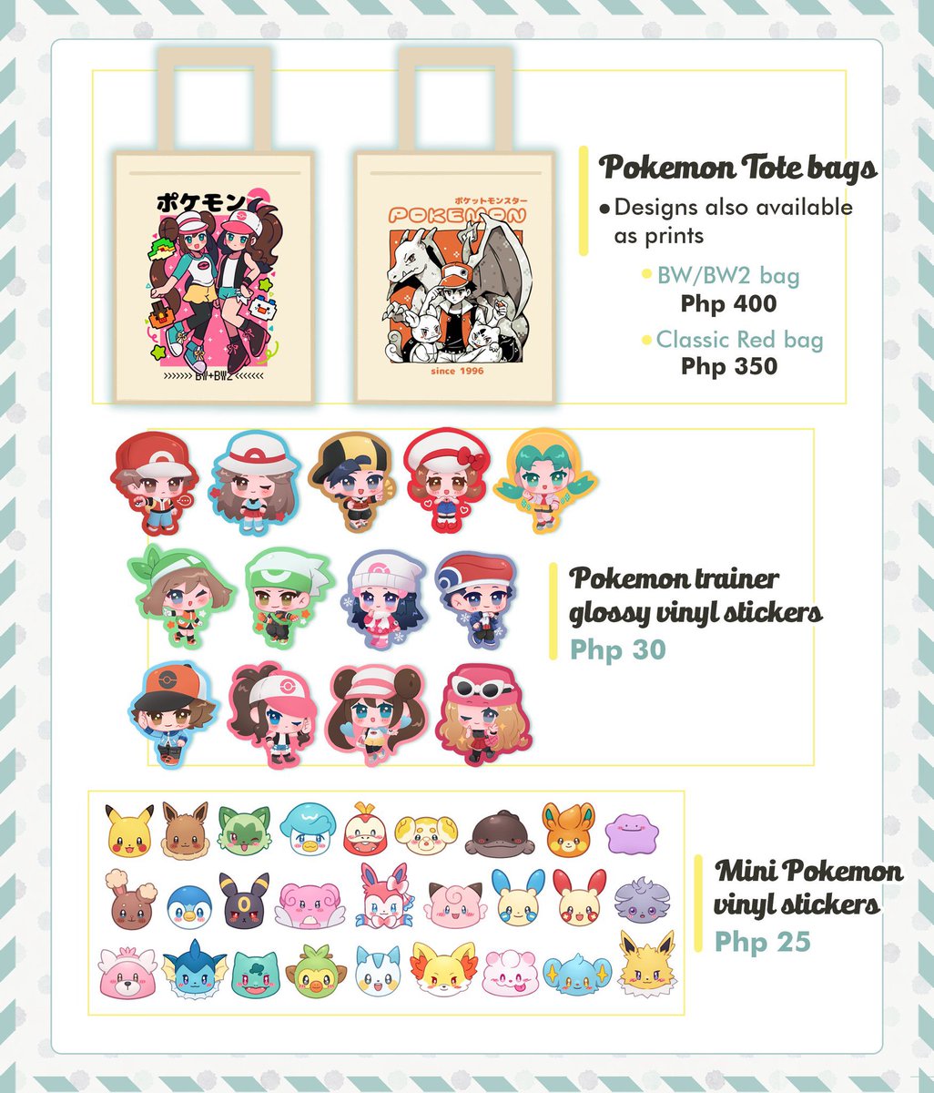 My catalog for #PokeconPH2023 this Saturday! I made some new merch and also chose a couple of art to have as prints! (I also finally restocked the BW/2 totebag ) Woohoo see you there💖💕