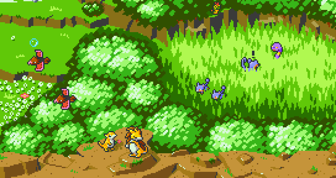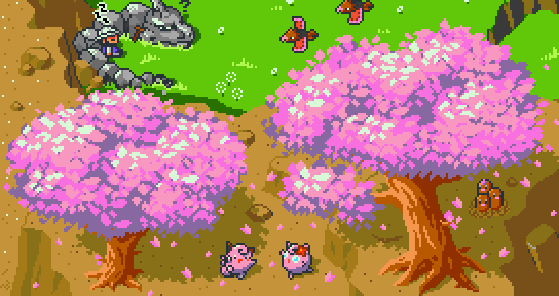 i feel like these percentage values are kinda arbitrary at this point, but let's just say route 4 for #kantoredrawn is about 85% done. #pokemonredrawn #pixelart #aseprite #ドット絵 #pokemon