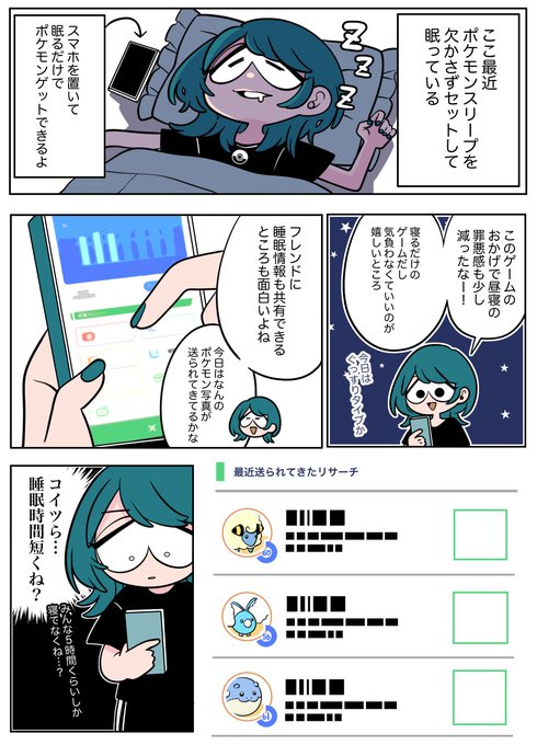 ポケモンスリープとはプレイヤーがちゃんと寝ないとゲーム内のポケモンたちがシンクロして寝不足になる。寝不足なのにひたすらきのみを回収してくる。しっかり寝ないとってなる。 #PokemonSleep