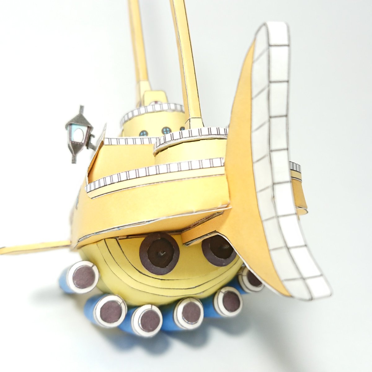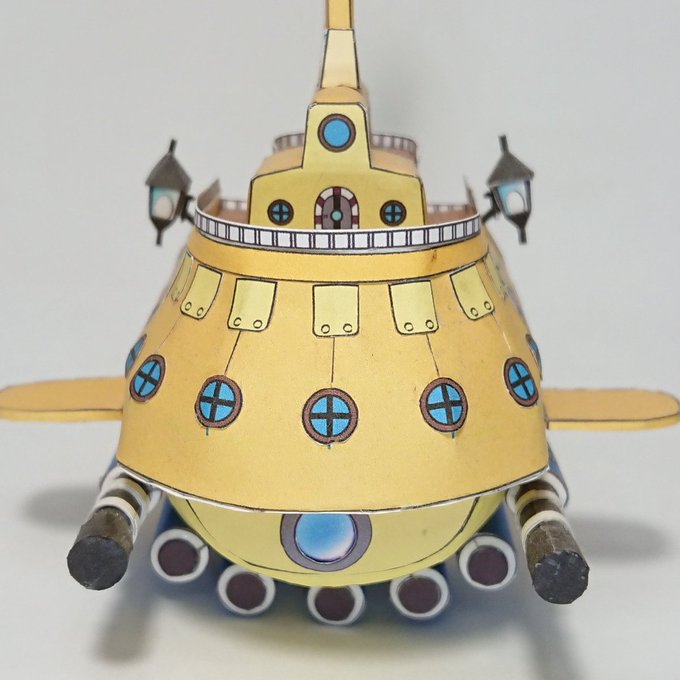 イエローサブマリンつづき。。。スクリューは一体何で動かしているんだろうか… #ワンピース #ペーパークラフト #トラファルガー・ロー #潜水艦 #ポータータング号 #Onepiece #Papermodel #Papercraft #TrafalgarLaw #PolarTang