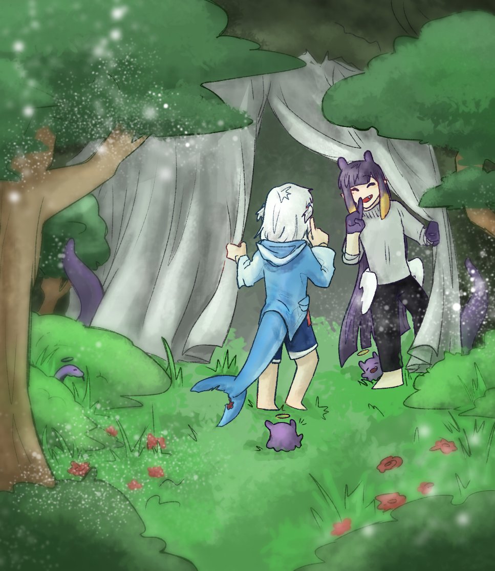 Day 3: Sunrise/Twilight A bit late but here is some beloved Amemori!! #ameliaRT #callillust #amemori #PolyEnRarePairWeek