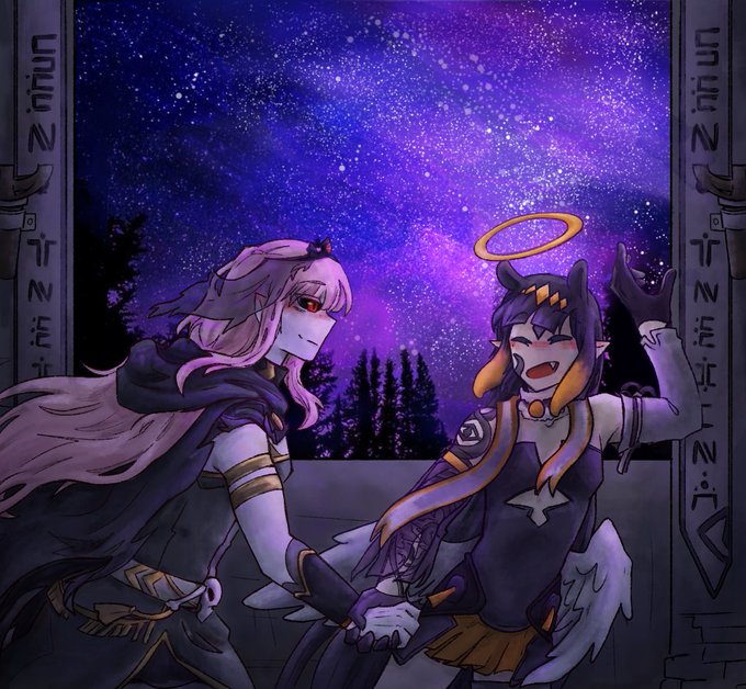Day 2: Stars/Emptiness Why do our evil duties of we can just run and kiss under the starry night? Two evils find one love #inART #callillust #inamori #Takomori #PolyEnRarePairWeek