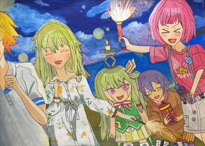 ✨🎡 an anonymous art submission! 🎡✨ Day 4: Glory Steady Go Made a watercolour of Nene’s Celebrate with Fireworks untrained for the polysho (´∀`) #prsk_fa #PolyshoWeek2023