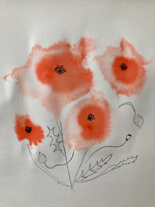 Some more playing with paint today: @lgvd suggested dropping concentrated paint onto wet paper, which was brilliant fun - I tried turning it into poppies. (There is decent quality paper on order...!) #painting #watercolour #poppies #ArtistOnTwitter