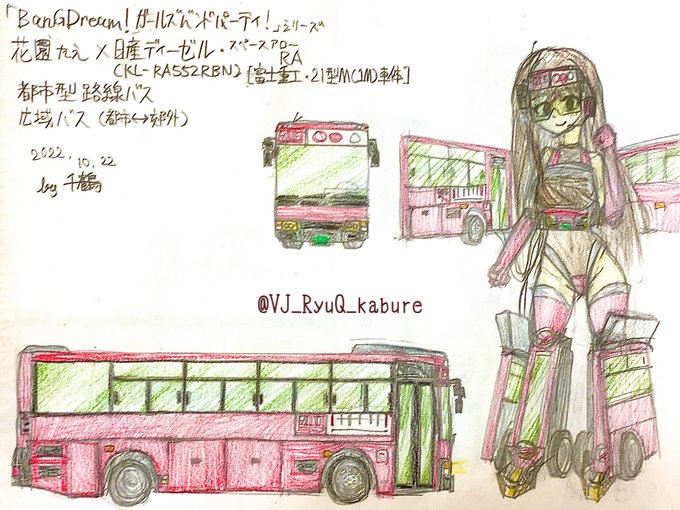 「BangDream! ガールズバンドパーティ!」シリーズ・花園たえ× 日産ディーゼル・スペースアローRA[富士重工21型M(1M)車体] #イラスト #落描き #二次創作 #絵描きさんと繋がりたい #BangDream #バンドリ #ガルパ #花園たえ #Poppinparty