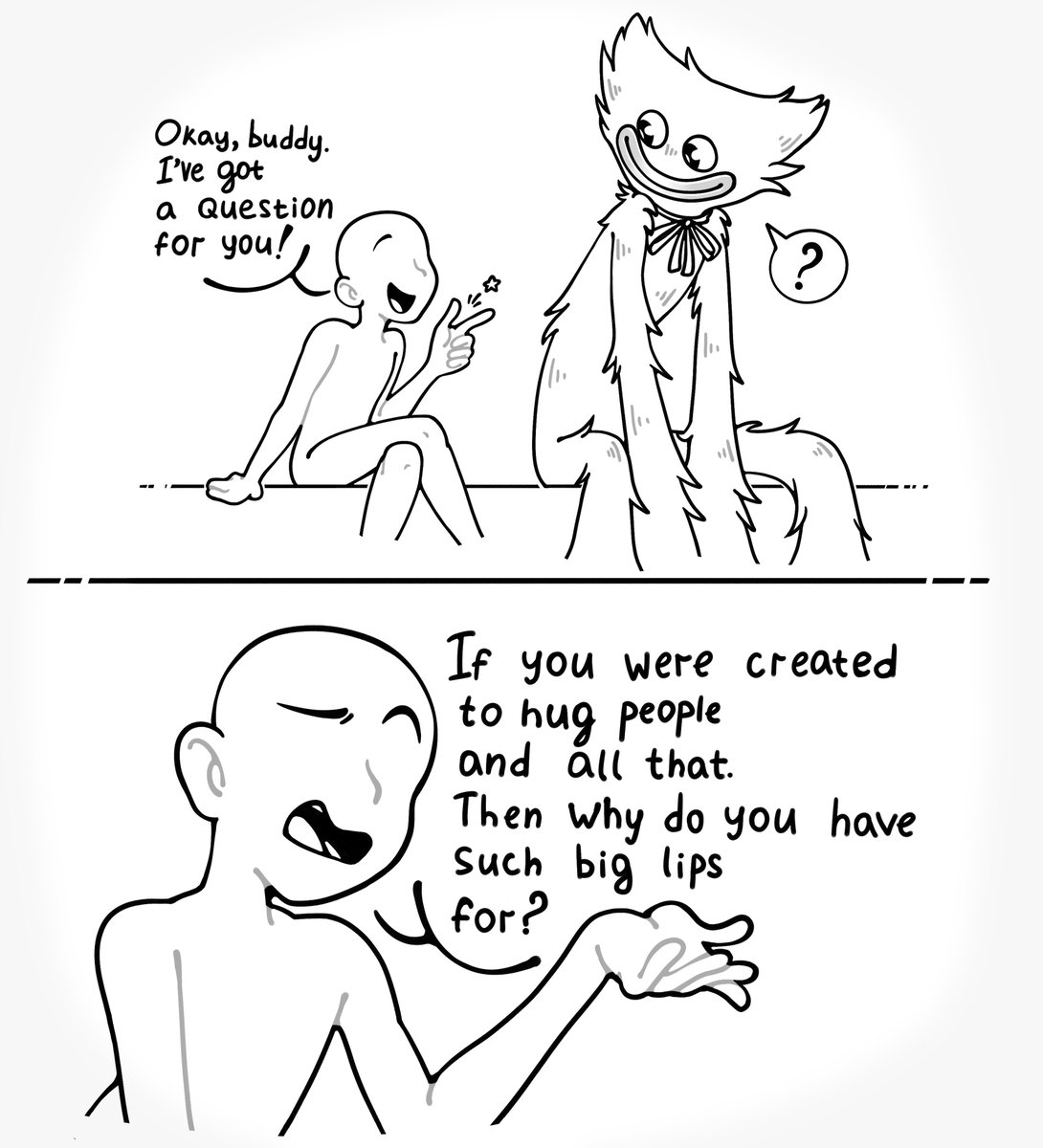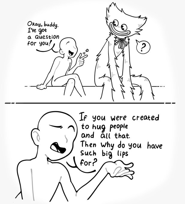 I almost never draw comics. But this time I had an idea for it. I don't know, maybe it turned out a little silly. I just wanted to draw something cute with him. 👉👈 #huggywuggy #PoppyPlaytime #PoppyPlaytimefanart #kissymissy