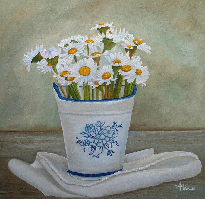 This is my painting "Daisies And Porcelain". The original is sold but you can find very nice prints of it here: fineartamerica.com/featured/daisi… #art #arte #kunst #oilpainting #contemporaryart #ArtistOnTwitter #flowers #stilllife #daisies #artprints #porcelain #ArteYArt #oleo #pomata