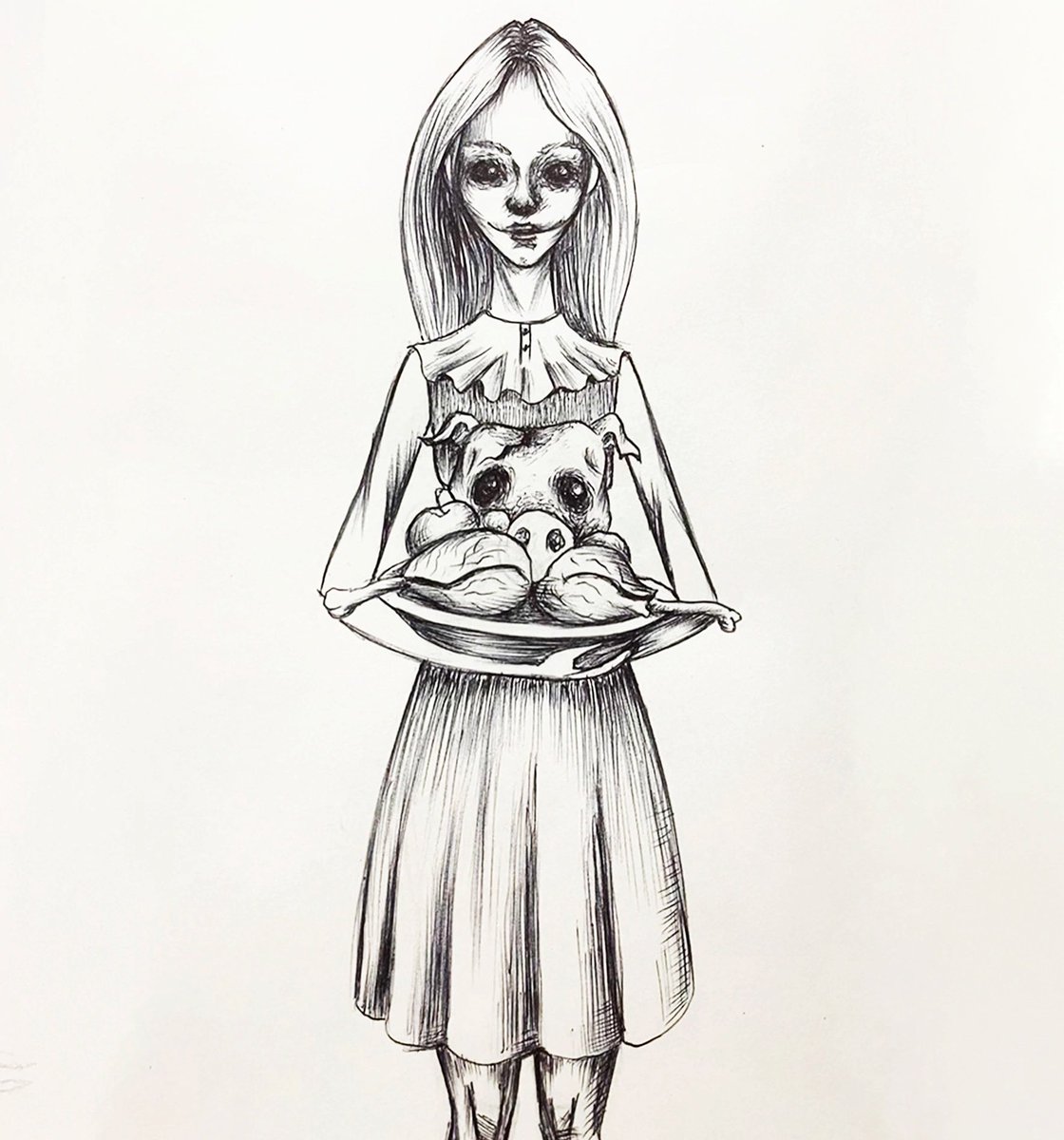 Graphic black and white girl with a pig 🐖 #drawings #ink #inkdrawing #inkedgirl #girl #illustration #artgallery #artwork #artlover #darkart #PortfiolioDay #ArtistOnTwitter