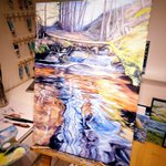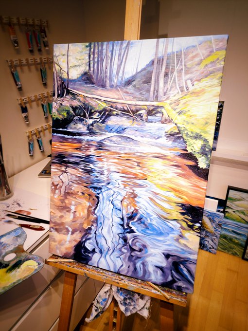 It's such a joy to see the scene present itself and build up in front of me, I'm in the front row of this show as an artist. This is the creek in the forest, freshly painted. 🤗 #originalart #painting #oilpainting #nature #art #positivity #forest #artistontwitter