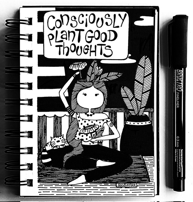 Here's how you can consciously transform your thought patterns: Everytime you have a negative/bad thought, replace it with a positive/good thought immediately. #Doodleebee #mindfulness #selfcare #doodle #art #ArtistOnTwitter #positivity