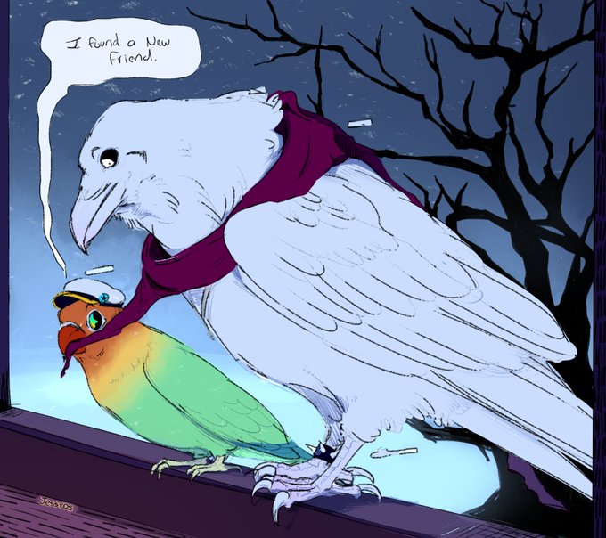 'A new friend' Mientras que Goth es un cuervo siento que Palette sería un agapornis al ser estas unas aves bastantes sociales, curiosas y muy coloridas 🐦 === #UndertaleAU #GothDeath #GothSans #PaletteRoller #PothShip #PalettexGoth #JessyDS #Sanscest #Agapornis #Raven