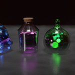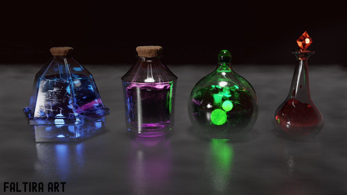 Day 4: Potions Which one would you drink? #inktober2021 #Potions #Blender3d #3dArt #lollesorceryacademy