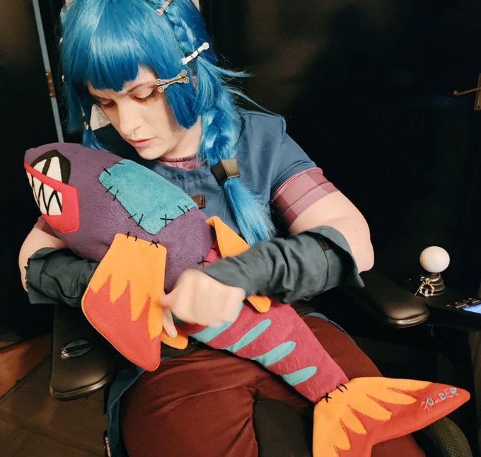 @arcaneshow Here's some of my #Powder #Cosplay to celebrate #ArcaneAnniversary! #Disabled #Cosplayer #Cosplay #PowPowRepresentation Thank you @JasonSpisak for believing in me & helping me recreate such a special #Arcane scene to/with me. #SilcoMeetsPowder #WeWillShowThemAll🥺🐒💙