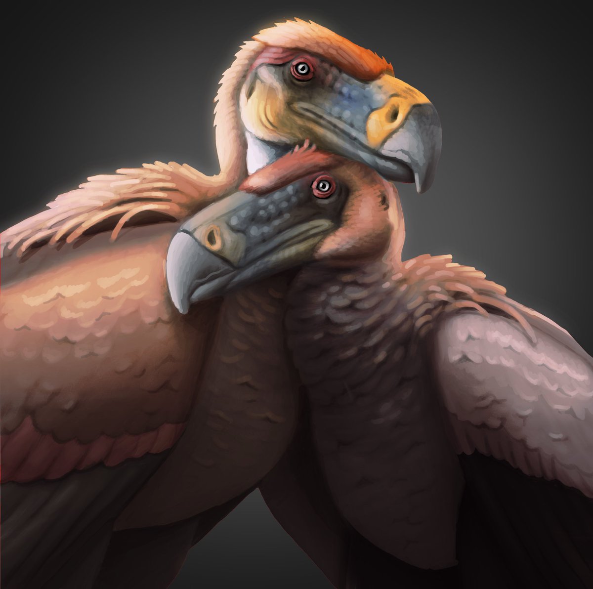 Argentavis couple reconstruction🪶 I wanted to hypothesize sexual dimorphism between male and female in this species, so I made this illustration. #paleoart #dinosaurpaleoart #dinosaur #bird #vulture #dinosaurart #argentavis #argentavismagnificens #prehistory #raptor