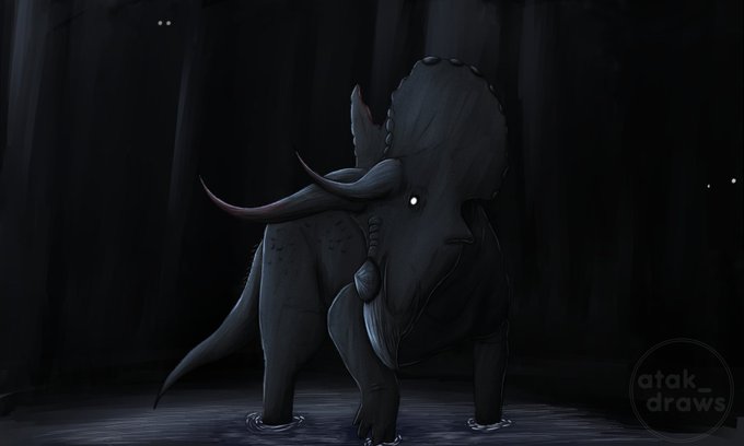 A bull Triceratops after a battle with a Tyrannosaurus. It might have sustained some injuries but ultimately came out on top. #paleoart #triceratops #Dinos #dinosaur #prehistory