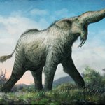 A trumpeting Deinotherium for the first #FossilFriday of 2023. This image is from 2017, painted for my 2018 book "The Palaeoartist's Handbook". #paleoart #prehistory #mammals