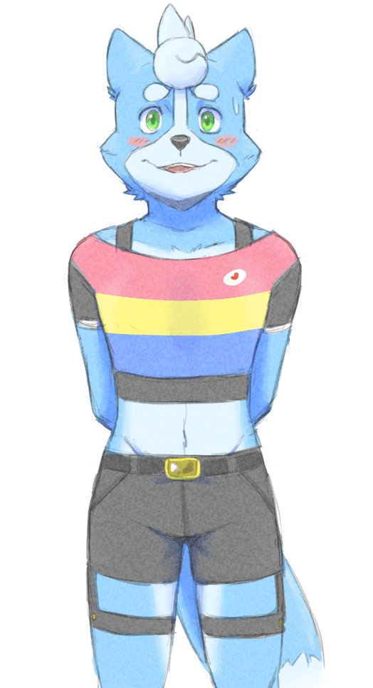 I dunno, I saw this cute pair of shorts on the internet and I wanted to put Marcus in them. Then I had to pair it with a crop top in pantastic colors for my blue boy~ #starfox #fanart #Pride2022 ❤️🐕❤️