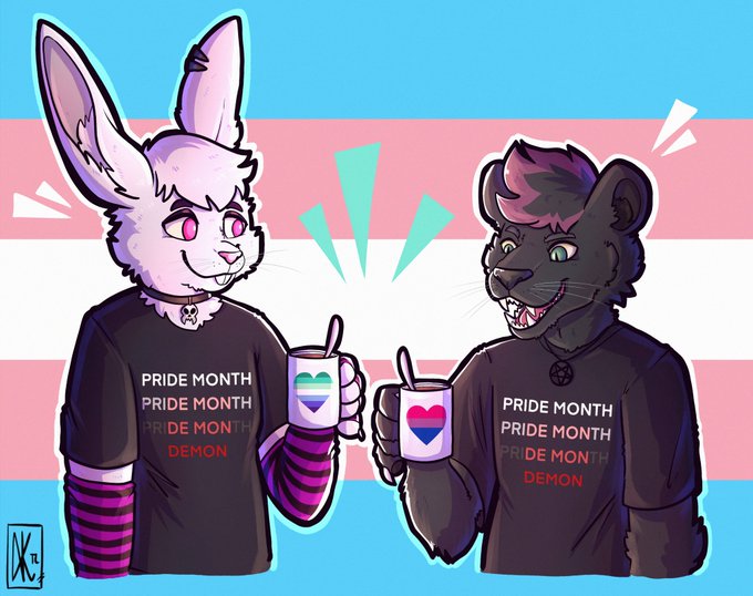 🏳️🌈A full colored, double Pride [Demon] Month commission for @cha0ticg0th! [ #furryart #Pride2022 #PrideMonth #furry #commissionsopen #Pride #commission #furryartwork]