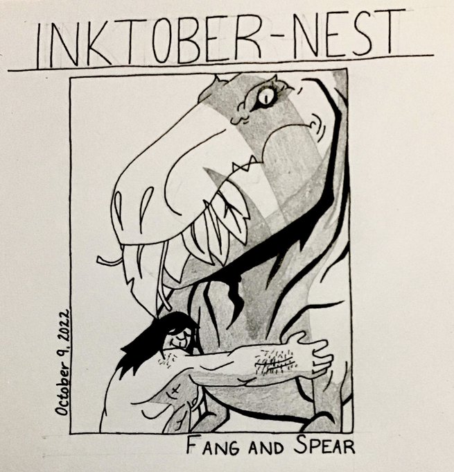 Day 9 of #inktober ! Todays prompt is Nest and I drew Spear and Fang from Primal. Spear is helping Fang make a nest for her babies #traditionalart #inktober2022 #inktober2022day9 #inktoberday9 #primal #artist #art #ArtistOnTwitter #moots #artmoots