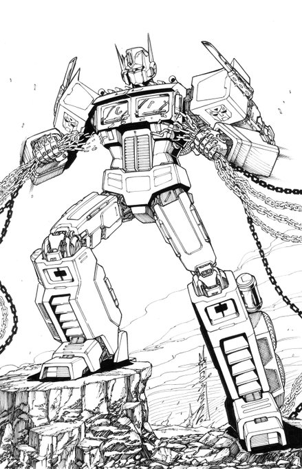 B&W commission of Optimus Prime breaking some chains as asked for. #Transformers #Hasbro #G1 #OptimusPrime #prime #commission