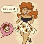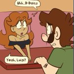 (1/3) The plumbers bouquet: part 3.3 . Daisy runs off before she says something even more embarrassing. Meanwhile Luigi spots someone familiar across from them. . #SuperMarioBros #Luigi #PrincessDaisy #luaisy