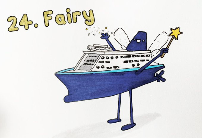 #Inktober Day 24: #Fairy My visual puns are so outrageous! Help me please, I can’t stop. #inktober2022 #inktoberday24 #inktober2022fairy #ferry #doodle #drawing #wand #boat #bigboat #ink #marker #promarker #illustration #childrensbooks #wand #magic #proabablytheworstpunyet