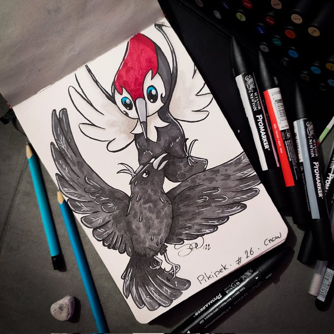 #Pikipek 🐦 #Crow #Inktober / #Witchtember day 26 : Picassaut : "C'est quoi ce Pokémon ? 🤨" Le Corbeau: "C'est quoi ce drôle d'oiseau ? 🤔" #art #artwork #ink #pokemon #pokemonart #pokemonfanart #pokemonfan #fanart #picassaut #markers #promarker #alcoholmarkers