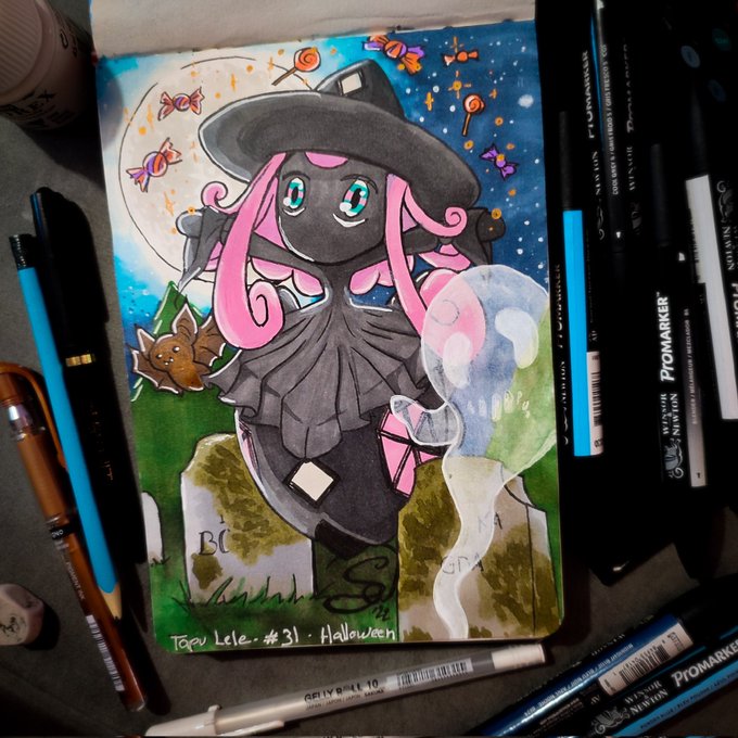 #TapuLele 🎃 #Halloween #Inktober / #Witchtember (bonus) day 31 : Voici le dernier Inktober ! Je l'ai fait, j'ai réussi à tenir tout me mois ! 😁 #art #artwork #Pokemon #pokemonart #pokemonfan #pokemonfanart #fanart #markers #alcoholmarkers #promarker #shiny #ShinyPokemon