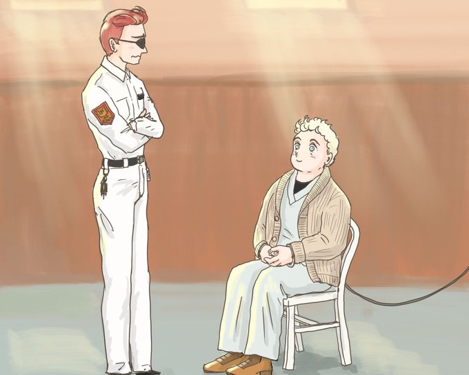 👼あれ、またバスティーユ? 😈いや、この衣装は配送の手違いだ、エンジェル (誰だ天使に手錠と腰縄つけたやつ!🔥) #GoodOmens #ProdigalSon #GoodOmensFanArt