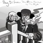 #ProjectKanjuro continues. Patch 3, days 7-9 with seripus Halloween vibes. Money witch Nami, Buggy the Horror Clown, and Smoker The White Hunter in the Night. #inktober #onepiece #fanart #halloweenart