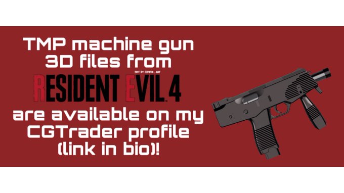 Uploaded a new #3DModel on my @CG_Trader profile: the TMP machine gun from #ResidentEvil4Remake (link in bio). @dev1_official #ResidentEvil #LeonKennedy #cosplay #3dprint #gun #prop