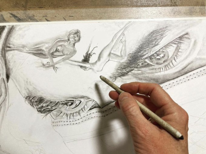More done on the #WorkInProgress Adding hair to Lilith and first layer of pencil to the bats #ArtTherapy #DarkArt #TattooArt #Mindfulness #MentalHealth #BipolarAwareness #PsychosisAwareness #SMIAwareness #Abelism #Sanism #NothingAboutUsWithoutUs #HiddenDisabilities #MentalIllness