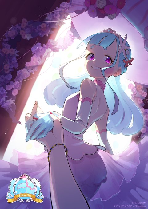 まつもと。さん (@mtmt128341 )ちのプルモちゃん5さい! とミュライナちゃん5さい!です! 手をつないでおさんぽする2人を思い描きました。 おたんじょう日 おめでとう ございます🌸 2022.4.9 #プルモちゃん5さい #プルモちゃん #Punitlium