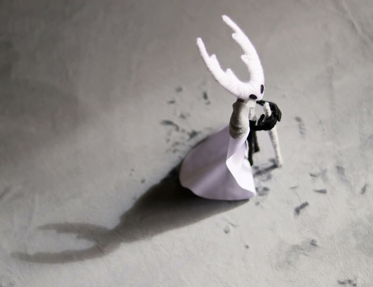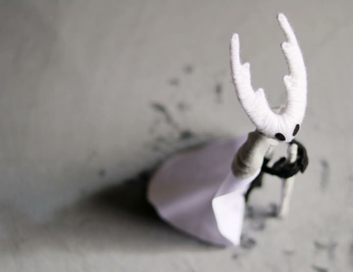 PeeVee with royal cape so fluffy (minky!) that Hornet spends days snuggling in it 😂🌸🤍 Please check our Etsy shop for all the softiness 🌸🤍 #hollowknight #hollowknightart #hollowknightfanart #purevessel #silksong #Hornet