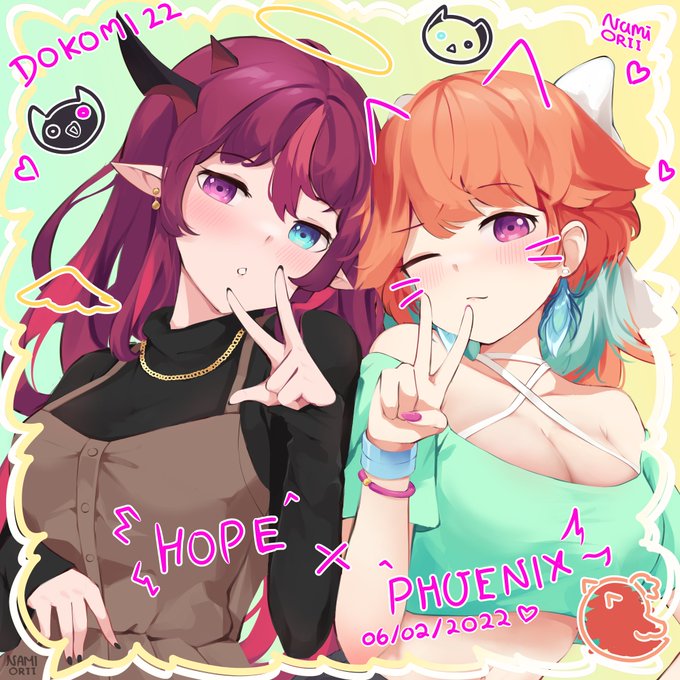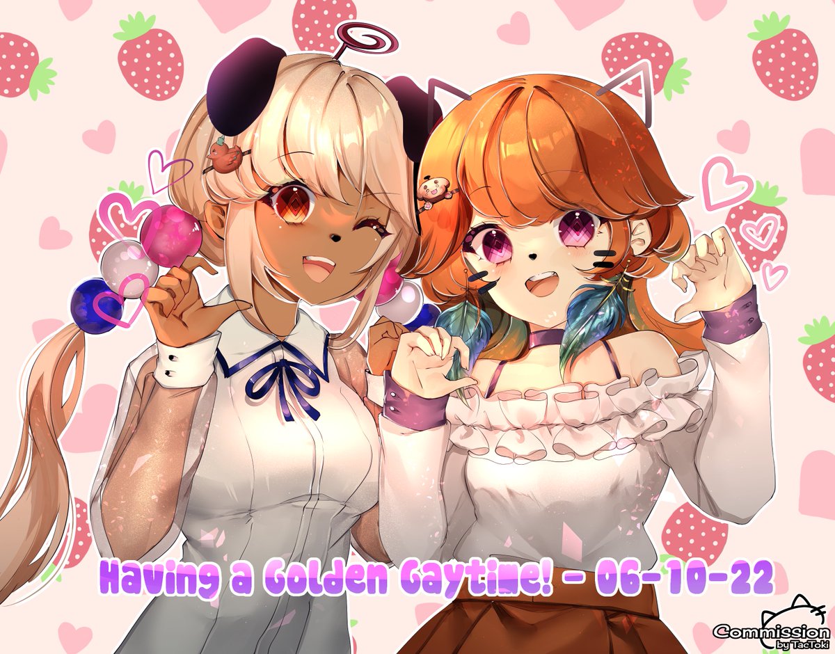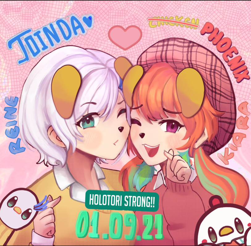 Commission for @strikeback_sky, PuriKiara (PuriKara) collab commemorating their first collab in Holotalk together! #artsofashes #絵ーちゃん #PuriKiara