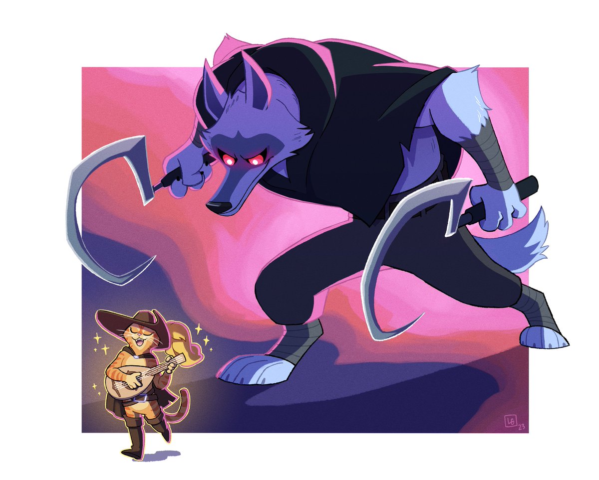 The pic having both of pleasures in it. I finally got a chance on watch this movie out, and in the same provided me inspiration on this commission be created. This Death-wolf will be as a reminder for you. #PussInBoots #PussInBoots2 #PussInBoots2TheLastWish #Death #fanart