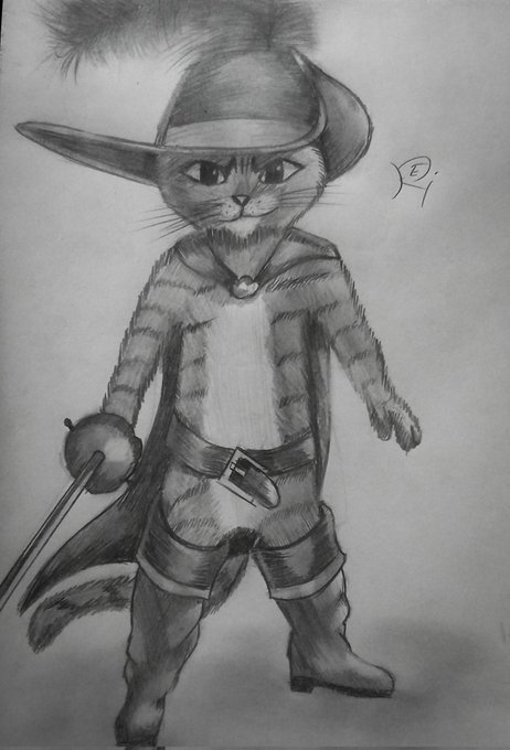 Treino de desenho com o lobão brasileiro ✨🐺 >> referência #pussinboots #pussinbootsfanart #tradicionaldrawing #fanart