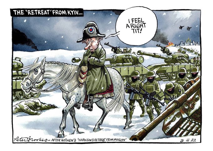 My cartoon Thursday @TheTimes. Putin’s Napoleonic cock-up. #PutinIsaWarCriminal #UkraineRussianWar