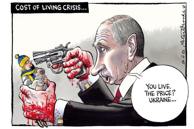 My cartoon @TheTimes Saturday on a price Ukrainians refuse to pay. #PutinWarCrimes #UkraineRussiaWar #CostOfLivingCrisis
