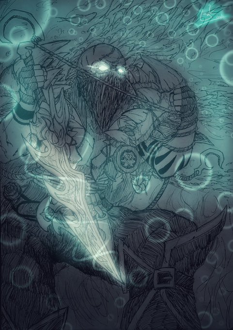 Here’s the full version of #Pyke - The Bloodharbor Ripper #art #illustration #illust #LeagueOfLegends #LeagueOfLegendsFanArt #glow #イラスト #digitalart #inking